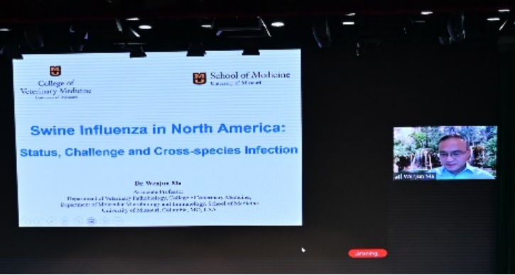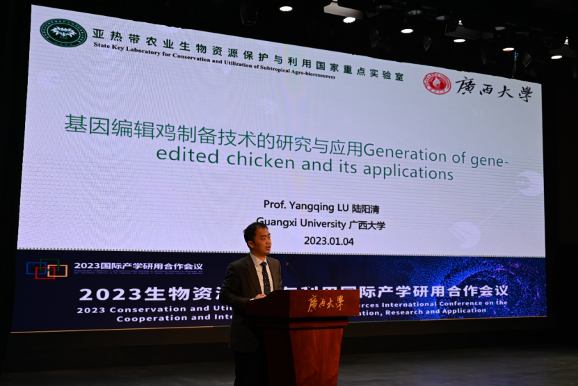 其中, “生物资源保护与利用产学研用国际合作研讨会”由太阳集团2138网址,2138cc太阳集团官网入口联合林学院承办,分论坛第一阶段的学术报告由我院常务副院长陆阳清教授主持。共邀请了国内外5位专家进行学术报告,围绕畜禽育种和健康养殖展开研讨。来自加拿大阿尔伯塔大学Leluo Guan教授从提高牛可持续发展的新型技术方面做了“提高牛生产可持续性的新型组学解决方案”的精彩报告;河南守望之境生物技术公司刘红波博士的报告“体细胞核移植技术在农业、生物医学及伴侣动物克隆中的商业应用”对近年来团队利用克隆技术成功克隆的牛、羊、宠物等动物的产业化与应用进行了展示;我院陆阳清教授的“基因编辑鸡的研究与应用”报告,充分展示了课题组近年来在国内外首次建立了高效的鸡原始生殖细胞分离培养体系,为家禽种质资源保存和新品种创制提供了细胞平台。针对畜禽健康养殖,来自美国密苏里大学的Wenjun Ma教授做了题为“北美猪流感:现状、挑战和跨种感染”,从猪流感的流行现状、跨种传播等进行了深入的讲解,并提出预警机制。中国农业大学徐闯教授根据多年来从事奶牛群发代谢病的致病机理、早期预警、群防群控、技术标准等技术产品的研发推广工作,进行了“天然植物提取物在围产期奶牛代谢病防控中的应用”的精彩报告。