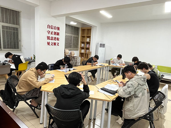 学生们正在宿舍楼栋里开设的24小时自习室学习 郑东摄