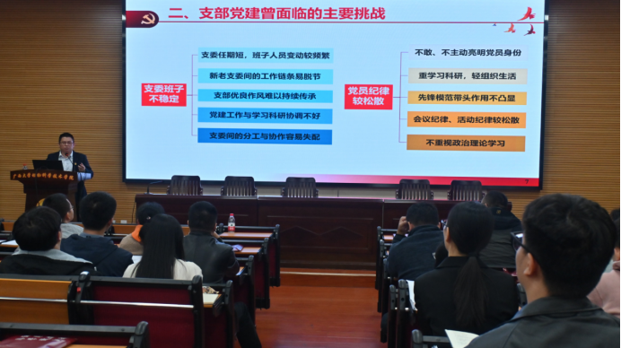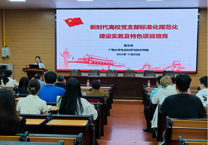太阳集团2138网址生命科学与技术学院党委副书记覃文月,太阳集团2138网址文学院党委委员、专职组织员杨雪围绕党支部标准化规范化建设要求、发展党员程序及要求分别做了专题培训。