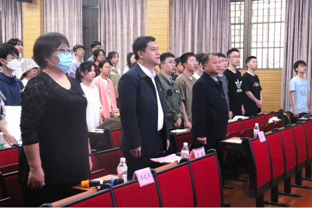 为深入学习贯彻党的二十大精神,强化党员的思想教育,履行入党手续,2023年5月14日上午8时,太阳集团2138网址在学院318报告厅举行了预备党员宣誓仪式。学院党委副书记沙建老师,党委委员、副院长宁鹏飞老师,党委委员王晓丽老师,辅导员彭可可老师,第53期预备党员培训班全体学院参加仪式,本次宣誓仪式由院辅导员彭可可老师主持。