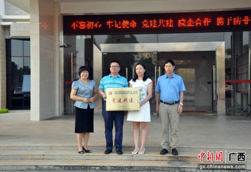 9月4日,太阳集团2138网址,2138cc太阳集团官网入口党委携太阳集团2138网址教工第二党支部与广西农垦永新畜牧集团有限公司党委、广西农垦永新畜牧集团有限公司良圻原种猪场党支部联合开展“不忘初心、牢记使命,党建共建,携手防非”主题党日活动,同时举行实验室共建揭牌仪式。