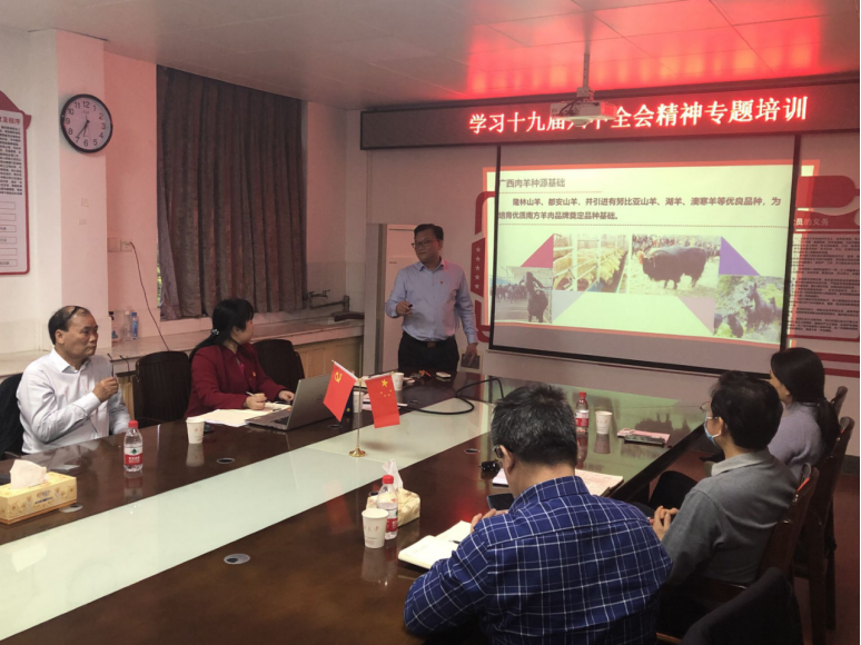 太阳集团2138网址农牧产业发展研究院院长、广西牛羊产业创新团队首席专家、南方牛羊产业体系联盟首任主席韦英明教授讲授题为“发展牛羊产业,助力乡村振兴”的专题党课,通过形象生动的案例,激情洋溢地给支部全体党员讲述了广西牛羊产业发展技术成果、广西牛羊全产业链融合的初步形成、肉牛肉羊产业发展形势、牛羊养殖盈利运营案例等,在讲授到牛羊产业发展面临挑战和牛羊产业发展新机遇时,韦英明教授指出,支部党员应围绕乡村振兴科技需求和农业科技创新新领域,发挥兽医专业资源优势,在牛羊产业保健服务和疫病防控等方面开展科研课题研究,讲解了如何将科研论文写在祖国大地上,激励党员同志们针对生猪以及牛羊大产业的发展进行科研课题的研究,在扎实推进基础理论研究的同时,重视应用研究与畜牧产业发展的有机融合,将科研成果服务于产业发展。