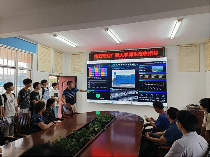 广西水产科学研究院武鸣基地肖俊主任为师生们介绍基地整体情况