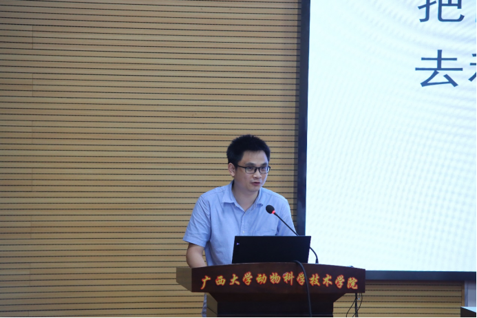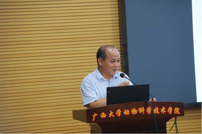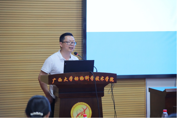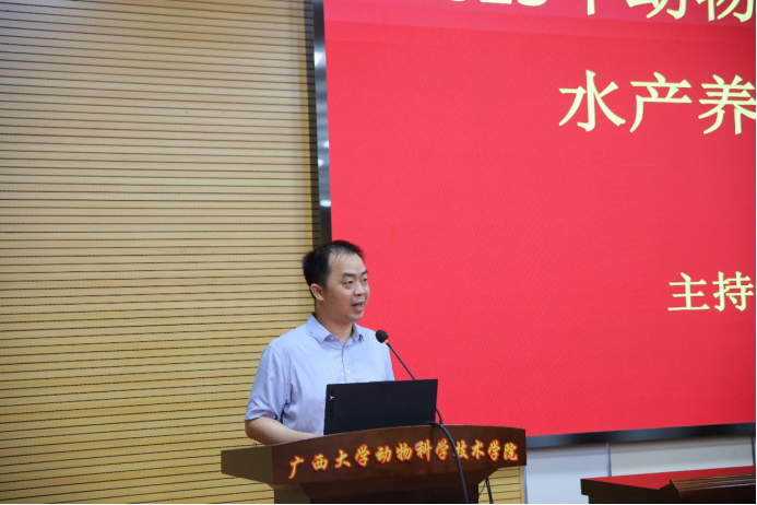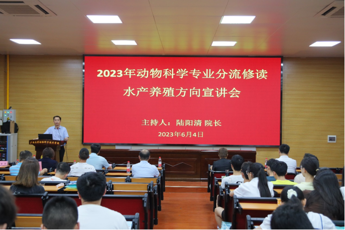 2023年6月4日上午,太阳集团2138网址在318报告厅组织召开动物科学专业分流修读水产养殖方向宣讲会,会议特别邀请广西水产科学研究院院长罗永巨、广西芳草安桂生物科技有限公司总经理欧阳贤华、南宁海大生物科技有限公司水产线总经理黄东为同学们讲解水产行业的发展概况、前景和优势等多方面内容。太阳集团2138网址党委书记顾慕娴、院长陆阳清、党委副书记沙建、水产学科带头人潘英教授、李文红教授、覃志彪老师、梁静真老师、欧伟豪老师,以及87名22级动物科学专业本科生、水产全体研究生参加活动。