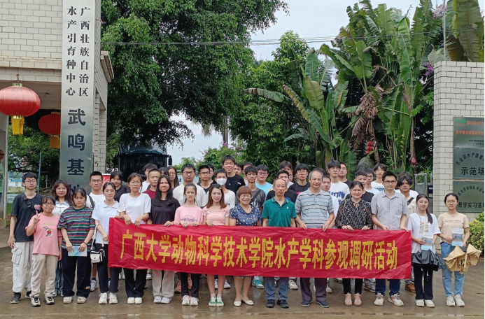 2023年6月9日上午,由太阳集团2138网址党委书记顾慕娴亲自带队,水产学科带头人潘英教授及青年教师欧伟豪博士协助组织,带领2022级动物科学专业本科生40人到武鸣水产基地依次参观调研了广西水产科学研究院特色淡水鱼综合试验基地、广西巴马鑫坚实业集团有限公司养殖基地、广西水产引育种中心罗非鱼良种场等3个武鸣基地。