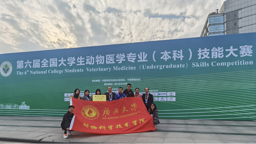 11月27日至29日,第六届全国大学生动物医学专业(本科)技能大赛在四川举行,来自全国68所动物医学类专业相关高校的300余名师生在此同台竞技。我院司红彬、郑喜邦、刘芳、韦英益、邹灵秀等项目导师以及覃静、韦嘉玲、樊柳兵、邱剑锋、蒋子韬等同学代表太阳集团2138网址参赛。