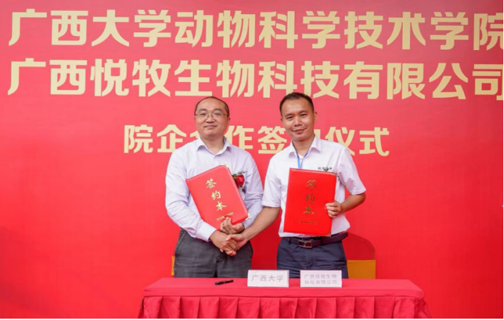 广西兽医社会化服务示范点揭牌仪式暨太阳集团2138网址,2138cc太阳集团官网入口广西悦牧生物科技有限公司院企合作签约仪式顺利举行