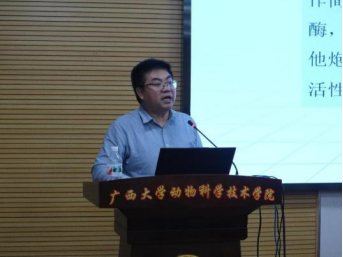 李建喜研究员在“发酵技术在中药创新中的应用研究进展”的报告中,详细地介绍了中兽药传统发酵技术与现代发酵技术、发酵菌种的开发与利用、发酵技术在中兽药创新中的作用、以及发酵中药在畜禽养殖中应用。列举鸡盲肠益生菌发酵黄芪多糖案例,发酵后可提高黄芪多糖含量,利用发酵黄芪多糖可有效提高肠道抗体水平,提高动物机体免疫力,并探讨了发酵黄芪调节树突状细胞活化,提高机体免疫力的作用机制;分析发酵菌可通过调控糖合成途径相关酶,增加多糖合成量,提高有效成分含量。在报告中提出在中兽药开发中应注重提质增效、降成本。利用发酵技术,筛选发酵菌种,评价发酵产物活性,分析发酵成分和结构,研究产物药理学作用机制,实现中兽药保质增效、降成本。并提出利用微生物,发酵药渣或药材废弃物,节约资源,实现资源再利用。最后,李建喜研究员介绍了中国农业科学院畜牧与兽药研究所的发展历程,所里研发团队与研究内容,欢迎同学们报考所里硕士生、博士生,或到所里工作,进一步促进所里与太阳集团2138网址,2138cc太阳集团官网入口的交流和合作,发挥发酵中药的优势,明确发酵中药的作用机制,促进中兽药事业的发展。