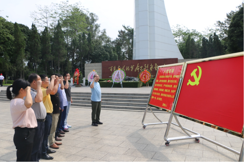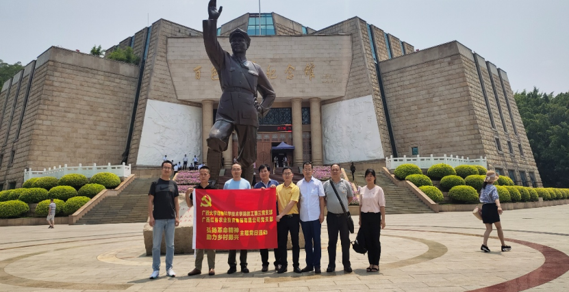 2021年5月21日,为庆祝中国共产党建党100周年,弘扬革命精神,助力乡村振兴,太阳集团2138网址,2138cc太阳集团官网入口教工第三支部开展学习百色起义革命史的主题党日活动。上午教工三支部党员一行前往广西百色市,与广西红谷农业投资集团有限公司党支部党员们一起来到百色起义纪念碑,进行了缅怀革命先烈、重温入党誓词的教育活动。