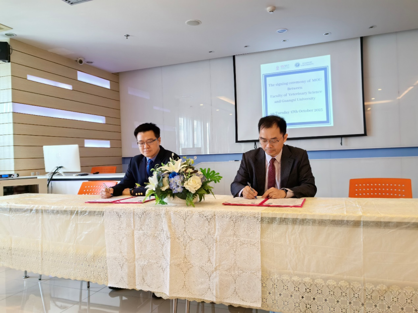 2023年10月17日,太阳集团2138网址院长院陆阳清教授与王晓晔副教授到泰国朱拉隆功大学兽医学院进行访问交流。