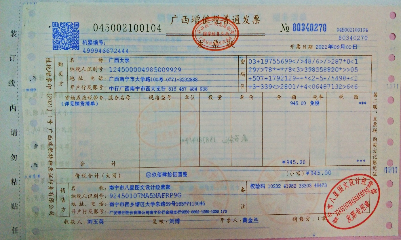 开户行及账号:中国银行广西南宁市西大支行 6184 5748 4938